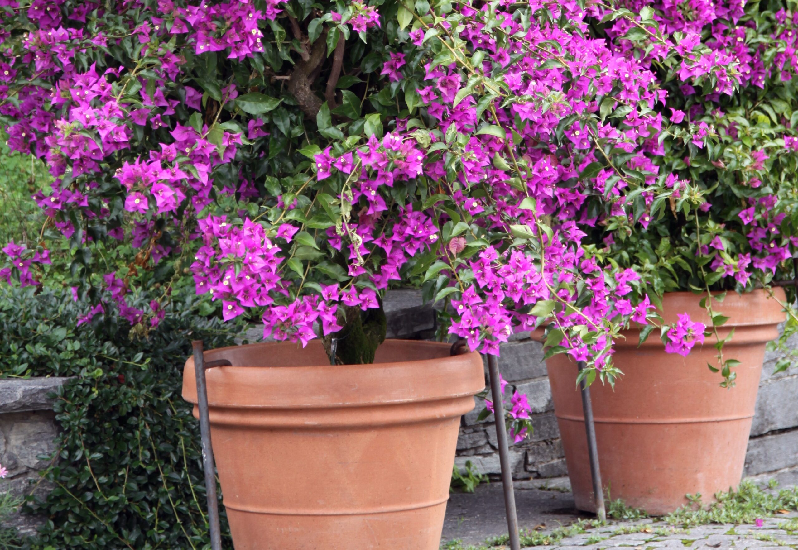 Naslovna fotografija: Bugenvileja v glinenih loncih – čudovita poletna cvetlica, ki pa potrebuje zaščito pred mrazom in dovolj prostora za prezimitev.