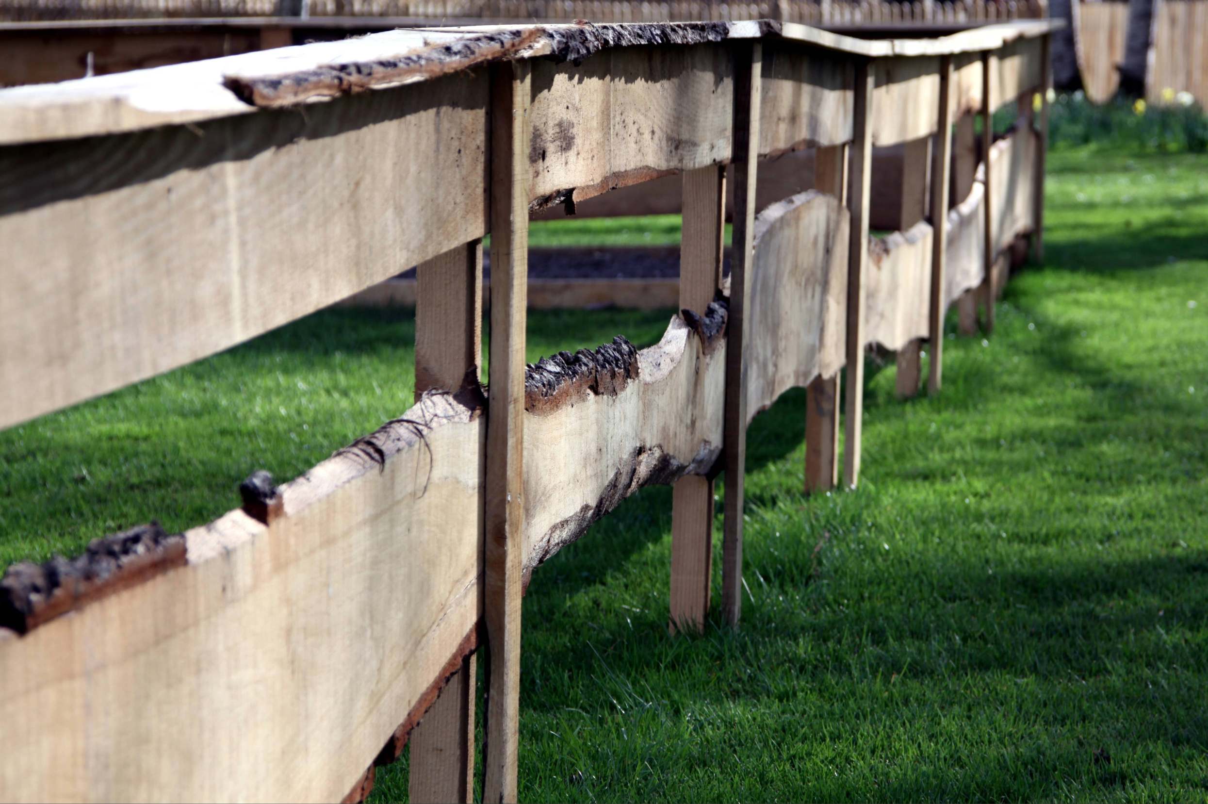 Rustikalna vrtna ograja iz desk z naravnim robom lesa je preprosta in estetska rešitev za ograjevanje vrta, sadovnjaka ali pašnika.