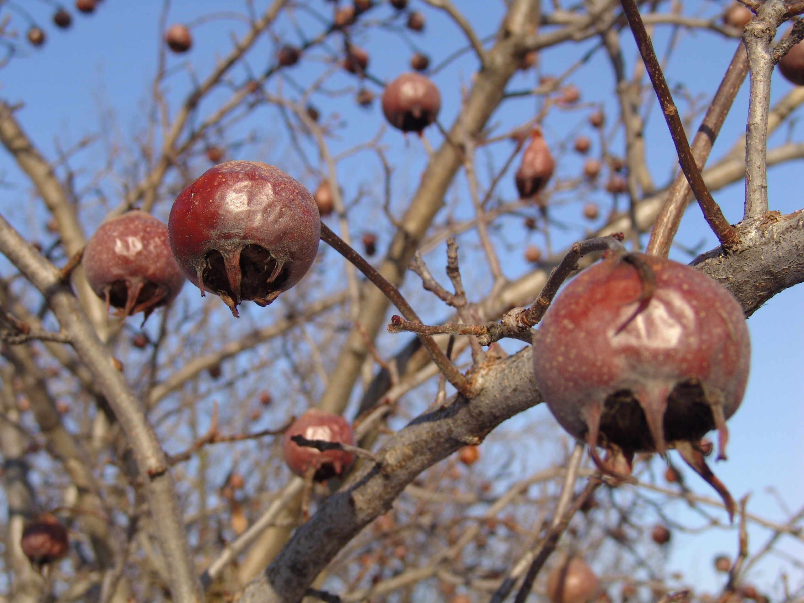 Naslovna fotografija: Nešplja pozimi – značilni zreli plodovi z odprto čašo, pripravljeni za pobiranje po slani.