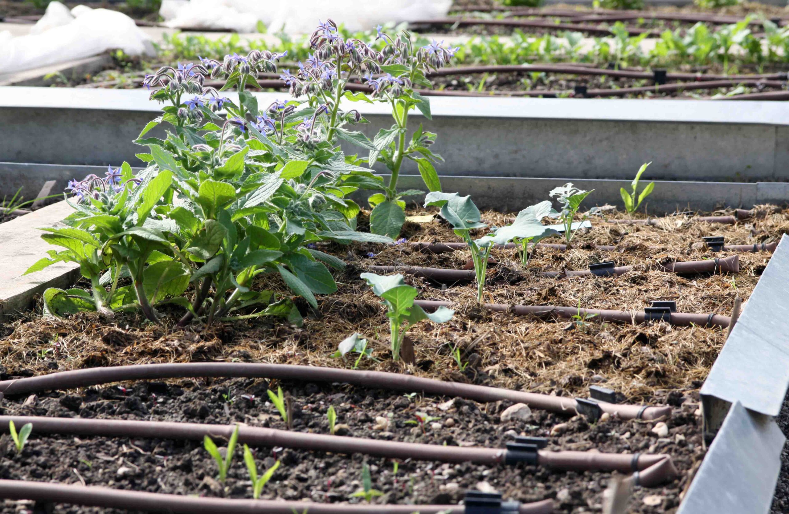 Naslovna fotografija: Na fotografiji je prikazan sistem kapljičnega zalivanja, ki je odličen za zelenjavne vrtove, saj omogoča ciljno in učinkovito uporabo vode.