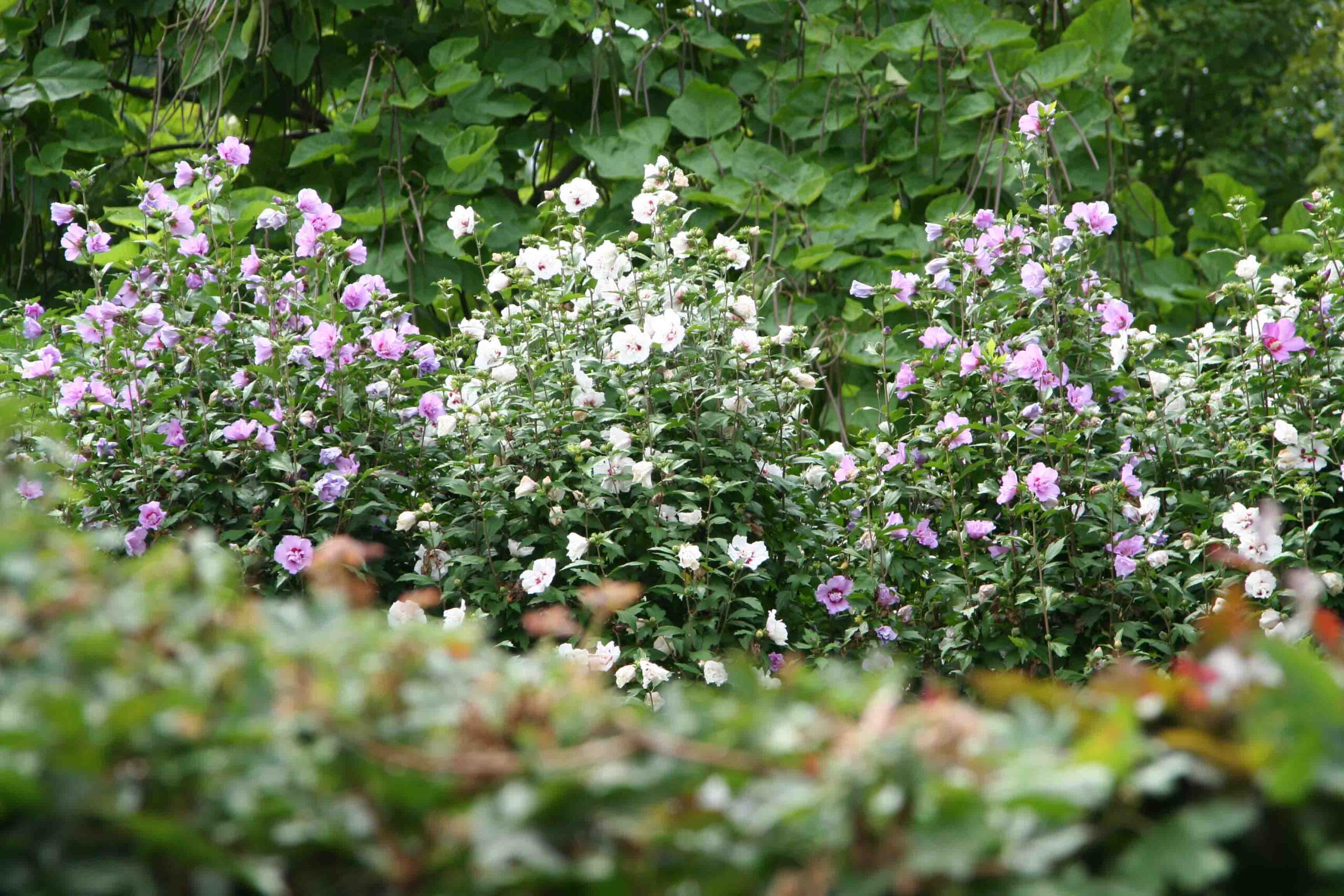 Fotografija naslovnice: Grmasti hibiskus kot cvetoča živa meja.